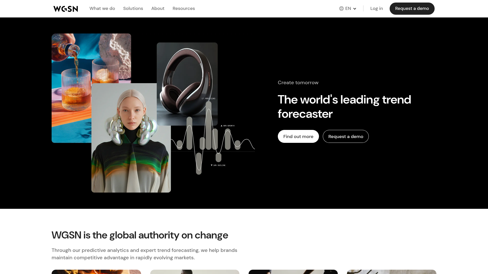 WGSN’s landing page is a masterclass in high-end B2B positioning, blending editorial aesthetics with analytical data visualization. It serves as a strong reference for creators looking to build a premium, authority-driven brand presence through a mix of layered imagery and clean, structured content layouts.