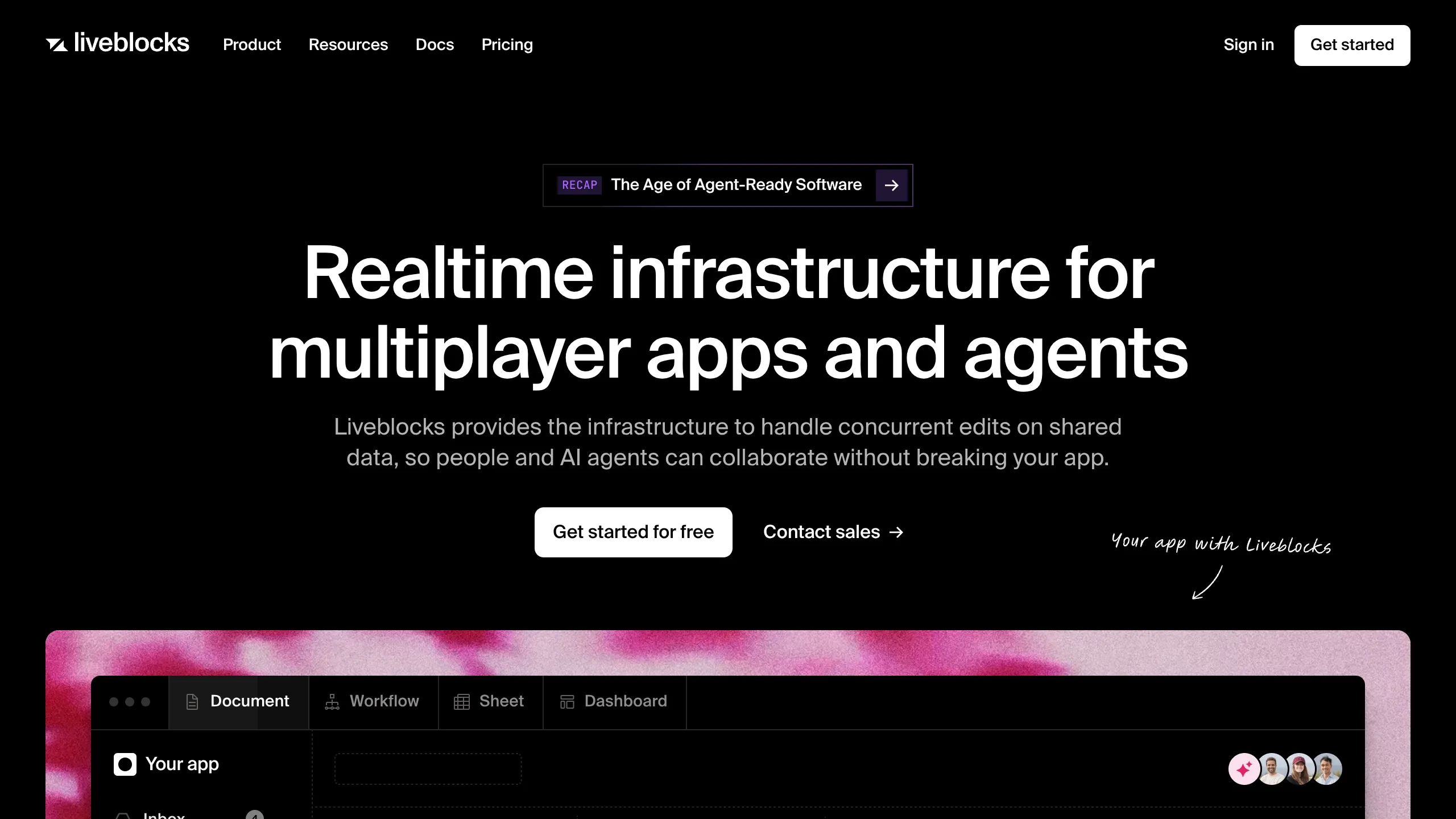 - Pill Badges: The 'Age of Agent-Ready Software' link uses a sophisticated transparent pill with a subtle border.