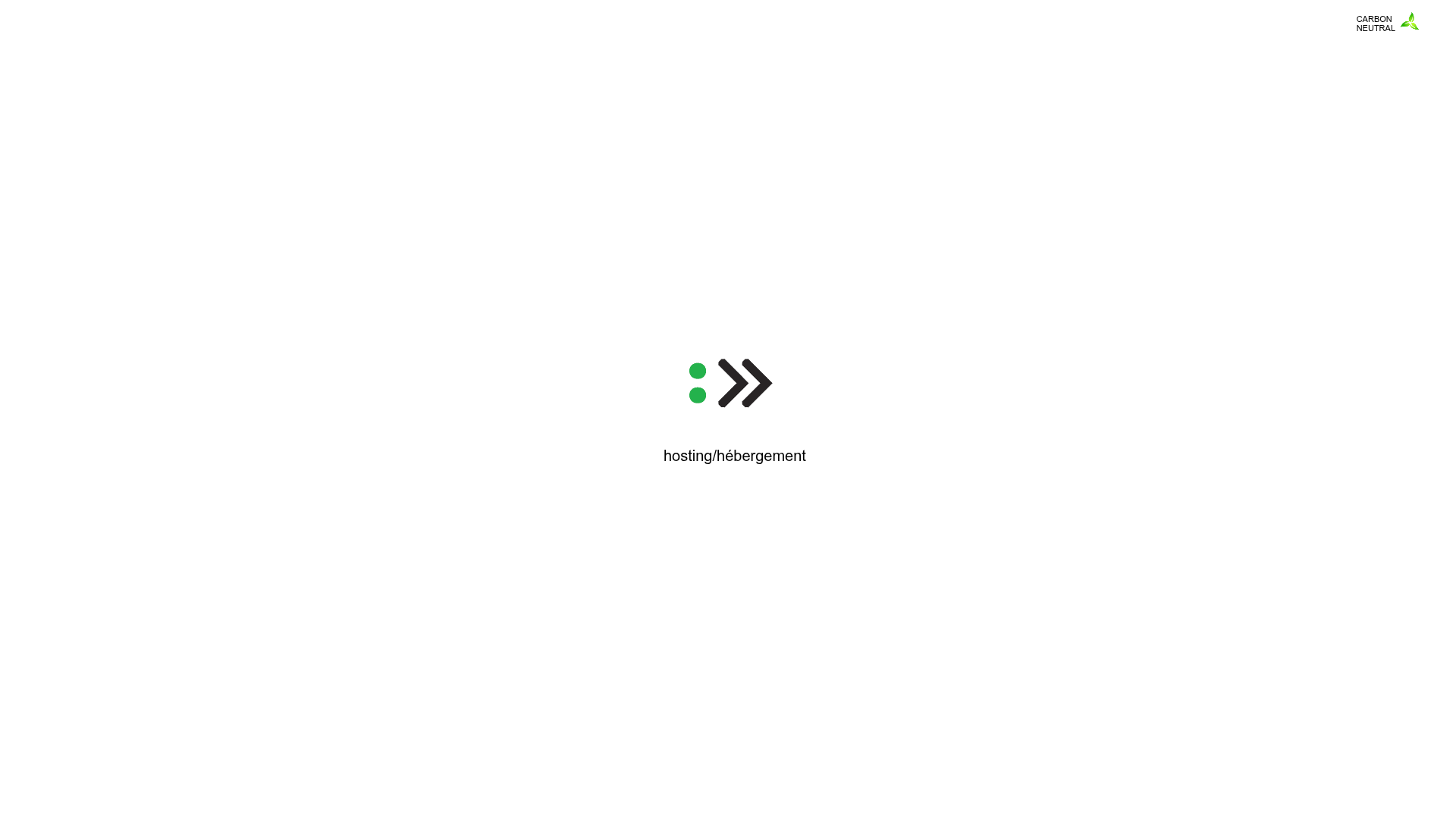 This is an ultra-minimalist placeholder page used for a web hosting service, focusing on essential branding and environmental credentials. It is a strong remix reference for developers needing a lightweight 'under construction' or 'coming soon' splash page that prioritizes speed, simplicity, and a clear brand identity.