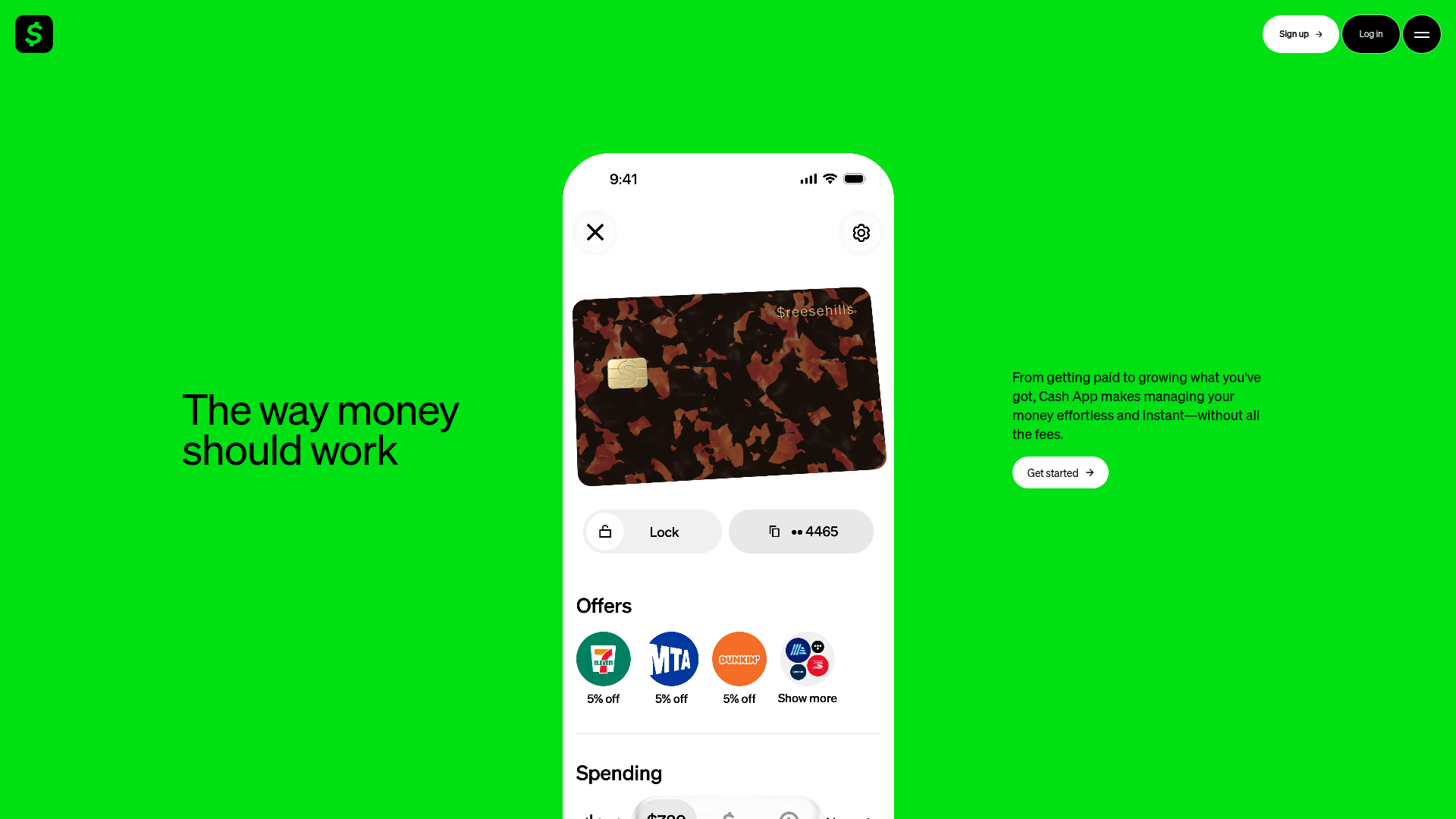 This landing page is a masterclass in minimalist, high-impact branding, utilizing a saturated neon green background and bold black typography. It effectively bridges the gap between web and mobile by centering an interactive app mockup as the primary visual anchor, making it a powerful reference for fintech and SaaS startups looking to prioritize mobile-first product experiences.