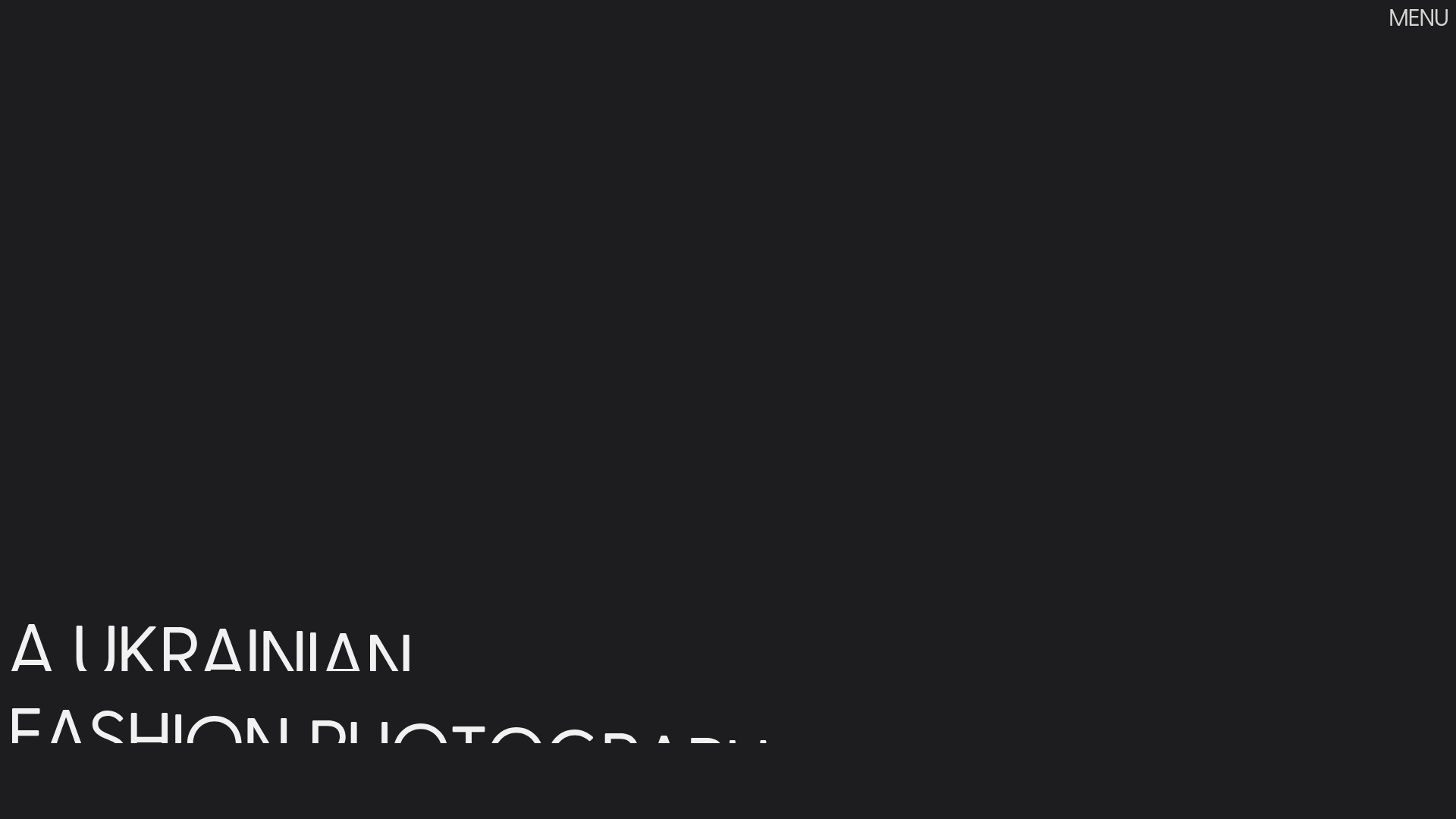 A refined dark-mode portfolio featuring a full-screen image loader, tiered typography animations, and creative text-distortion hover effects for high-end fashion branding.