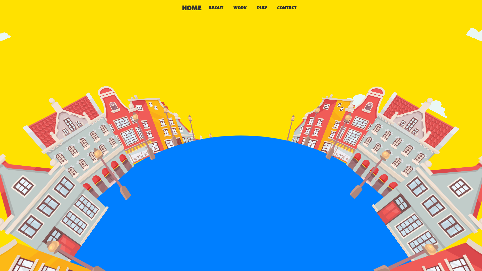 A creative motion-designed portfolio featuring a rotating spherical architectural landscape, scroll-triggered 3D character animations, and a cohesive stylized vector aesthetic.