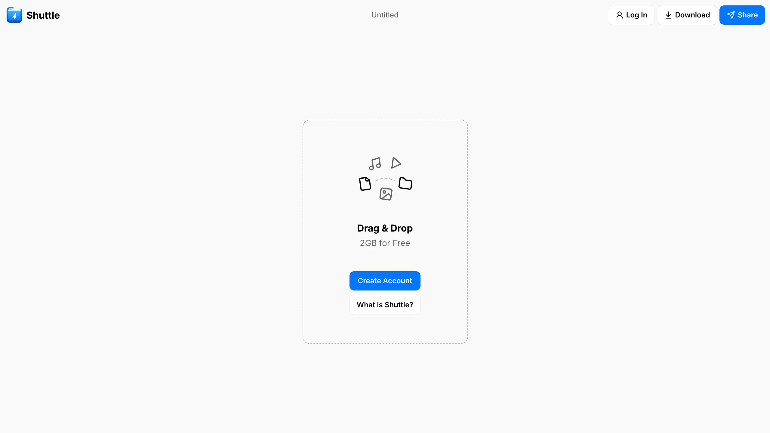 Shuttle is a minimalist file-sharing landing page that emphasizes weightlessness and simplicity through a floating central UI. It is an excellent clone reference for building focused, utilitarian tools that require immediate user action without the clutter of a traditional multi-section homepage. Its primary strength lies in the integration of a Three.js-powered cloud atmosphere with a glassmorphism interface.