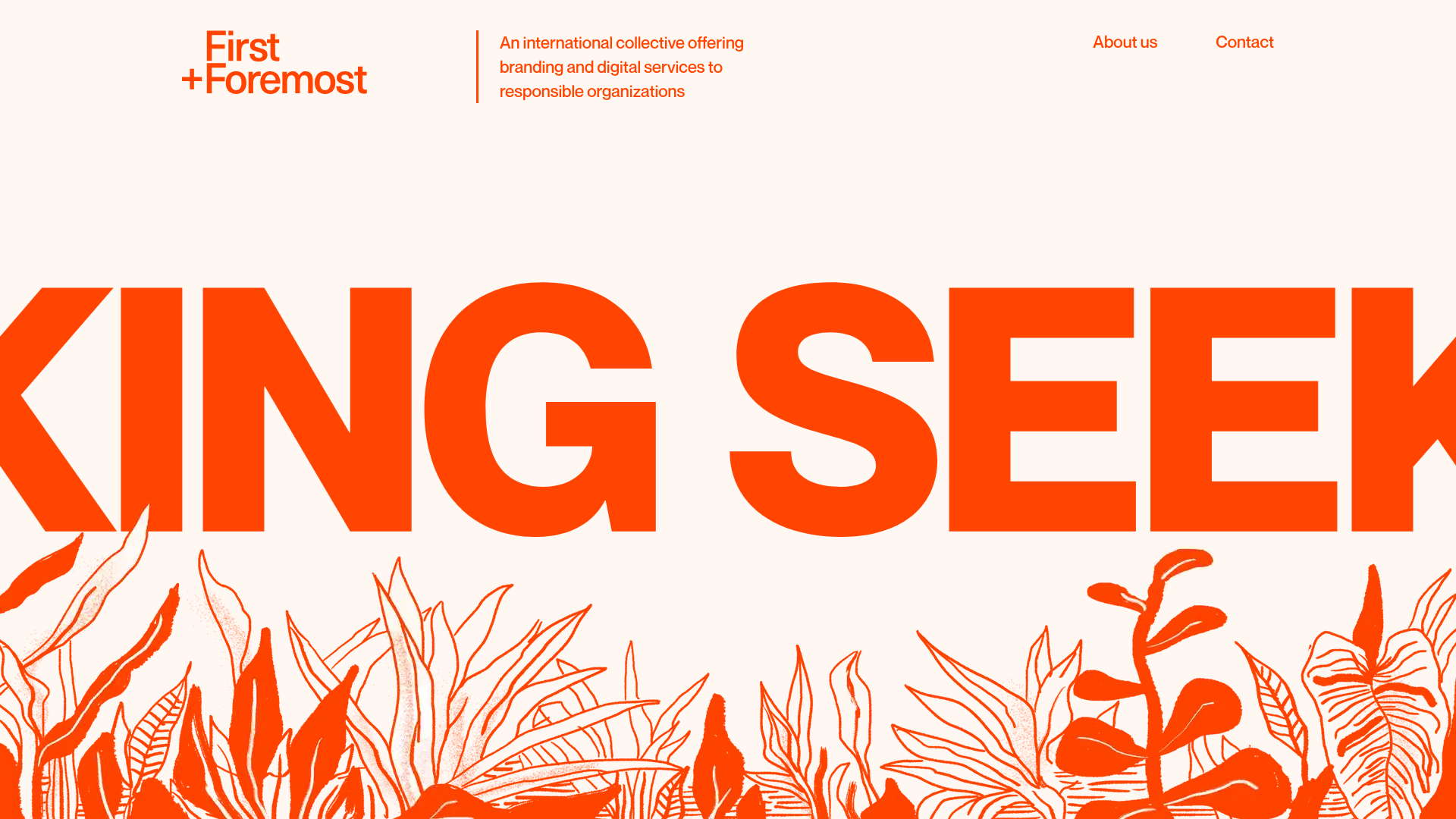 This agency landing page is a masterclass in high-impact, minimalist design, utilizing an aggressive "International Style" aesthetic balanced with organic botanical illustrations. It serves as an excellent reference for builders looking to implement bold typography and custom navigation patterns that break standard grid conventions without sacrificing readability.