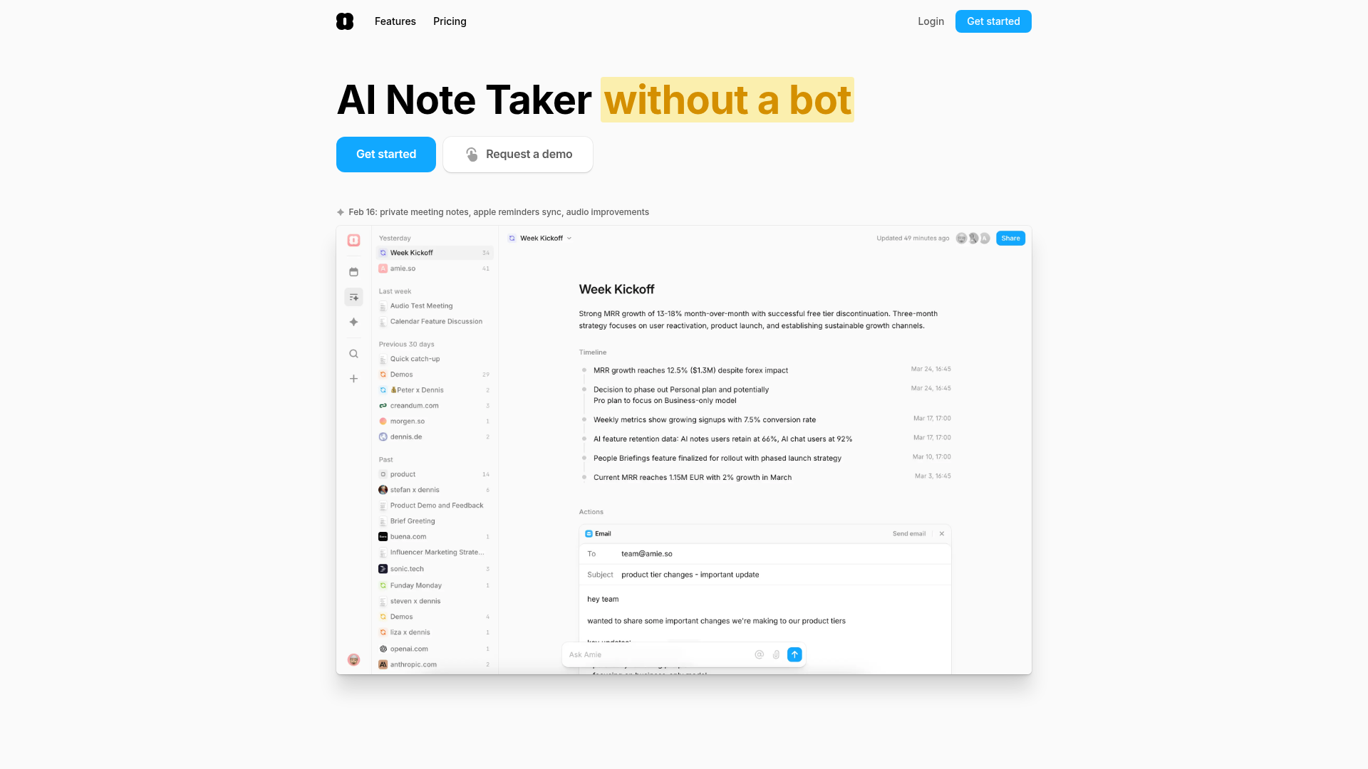 Amie AI Note Taker Landing Page