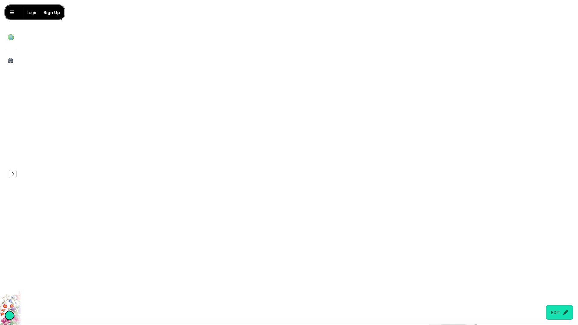 - Floating Status Bar: A pill-shaped top-left nav for Login/Sign Up.