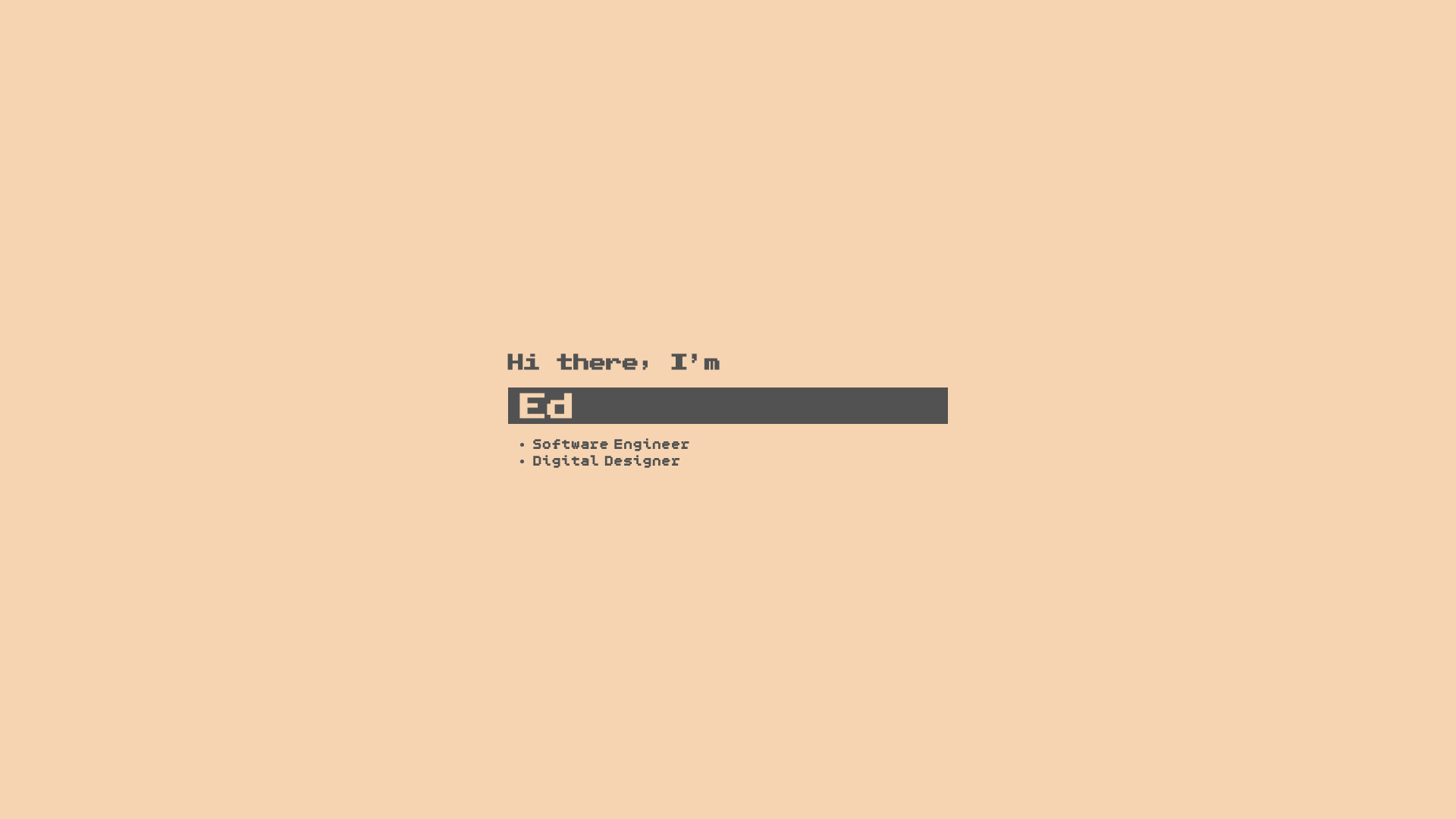 - Interaction & Motion: The primary interaction is the interactive 3D canvas (WebGL) that sits behind the content. The hero section uses a "highlighted text" block effect where the name "Ed" is nested in a high-contrast container. The code indicates a custom loading bar (