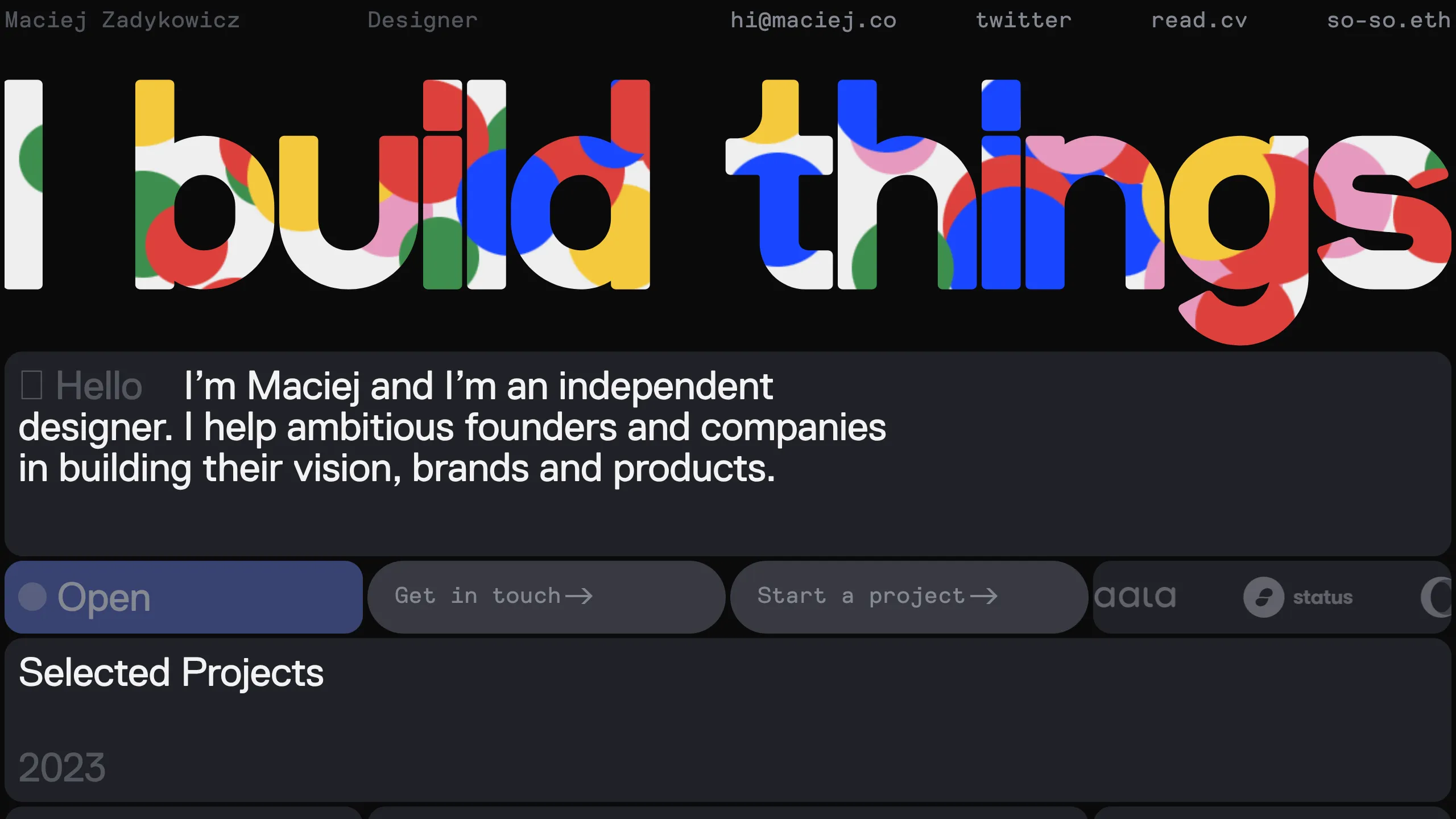 This portfolio for designer Maciej Zadykowicz is a masterclass in high-contrast dark mode design, blending large-scale typography with a modular grid system. It is a strong clone reference for builders who want to showcase a visual-heavy portfolio while maintaining a clean, structured appearance through a sophisticated "bento-box" layout.