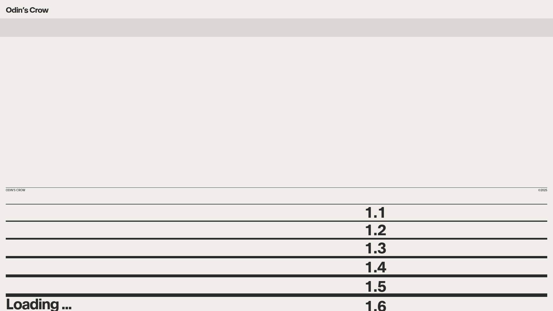 Odin’s Crow is a high-end minimalist business portfolio for an investment firm, characterized by a unique horizontal line-based aesthetic and a numbered index navigation. It serves as an excellent clone reference for building sophisticated, text-heavy landing pages that require a sense of precision, authority, and modern editorial flair.