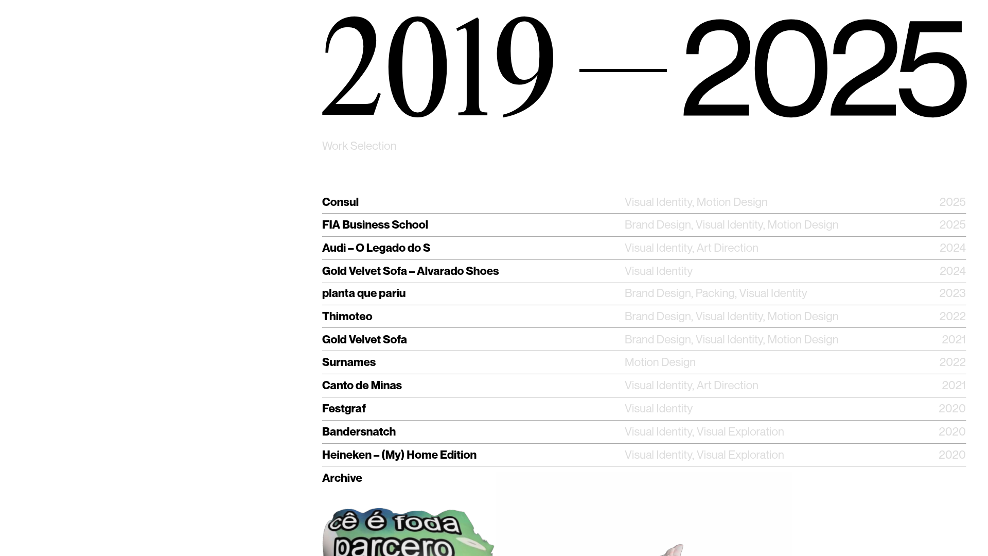 This minimalist portfolio index features a high-impact, typography-driven list view that prioritizes project velocity and visual discovery. It is an excellent clone reference for designers wanting to showcase a high volume of work using a clean, systematic layout that balances density with interactive delight.