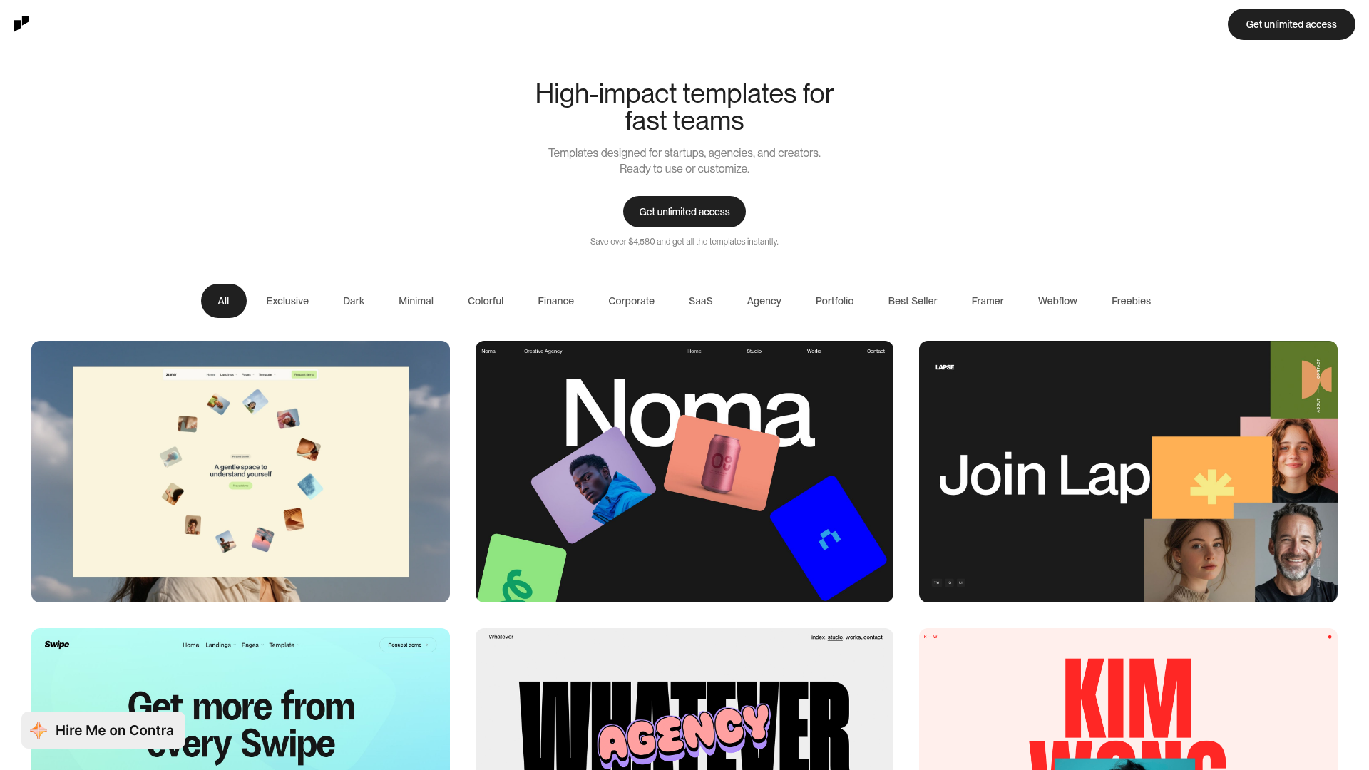 - Remix Directions: Replace the high-contrast aesthetic with a brutalist or glassmorphic style for a different vibe. The information architecture is easily adaptable: swap 'Templates' for 'Case Studies' to transform it into a professional agency portfolio.