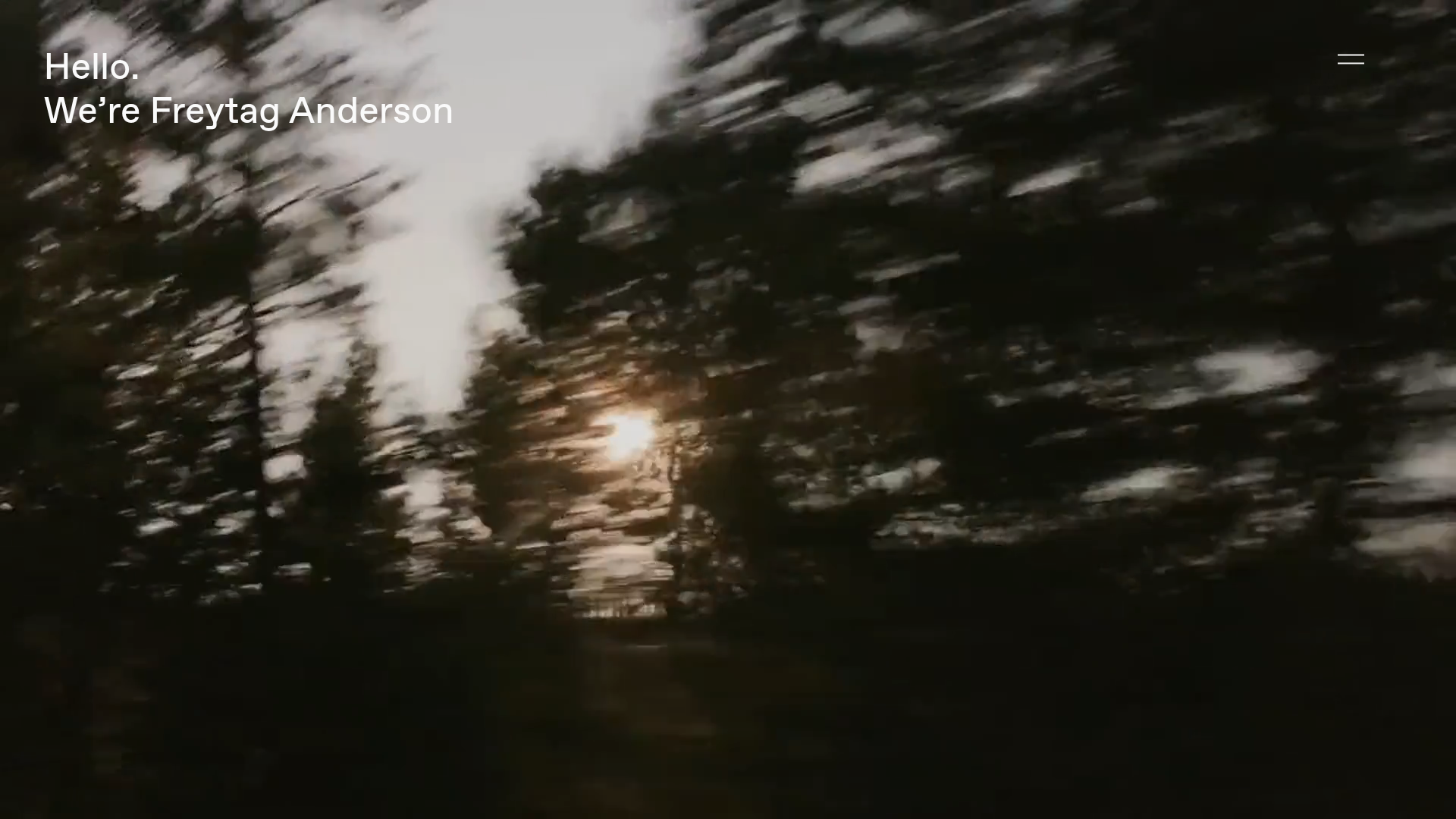 - Typography System: The site uses a clean, geometric sans-serif (resembling Inter or similar) with extremely heavyweight headers. Large-scale headings like "Hello. We’re Freytag Anderson" create immediate impact, while smaller supporting text uses generous letter-spacing to maintain readability.