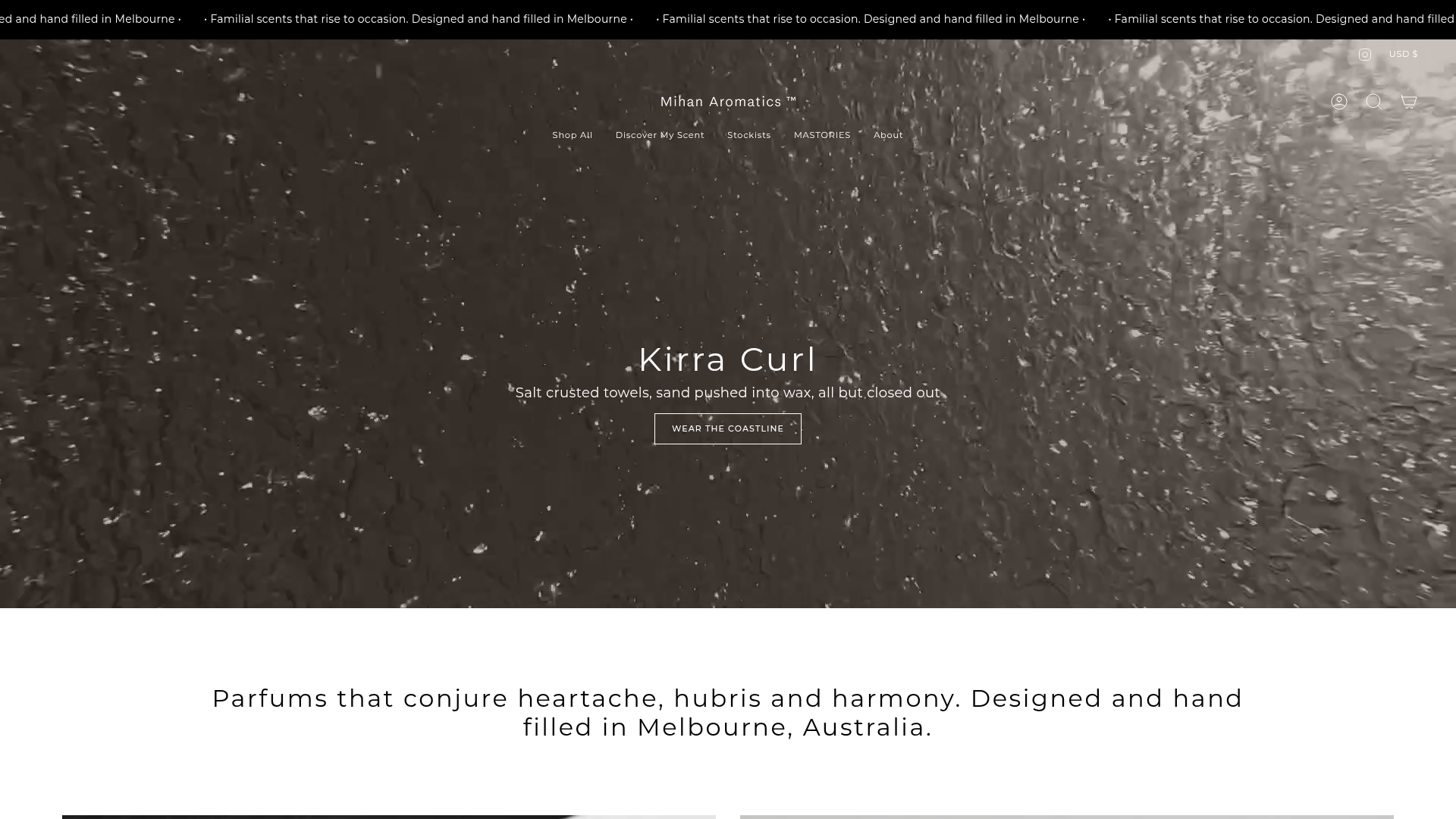 Mihan Aromatics is a luxury fragrance boutique utilizing a sophisticated, minimalist e-commerce layout that prioritizes atmospheric brand storytelling over traditional retail density. This reference is excellent for high-end brands seeking a premium "experience-first" digital presence that balances cinematic visuals with clean usability.