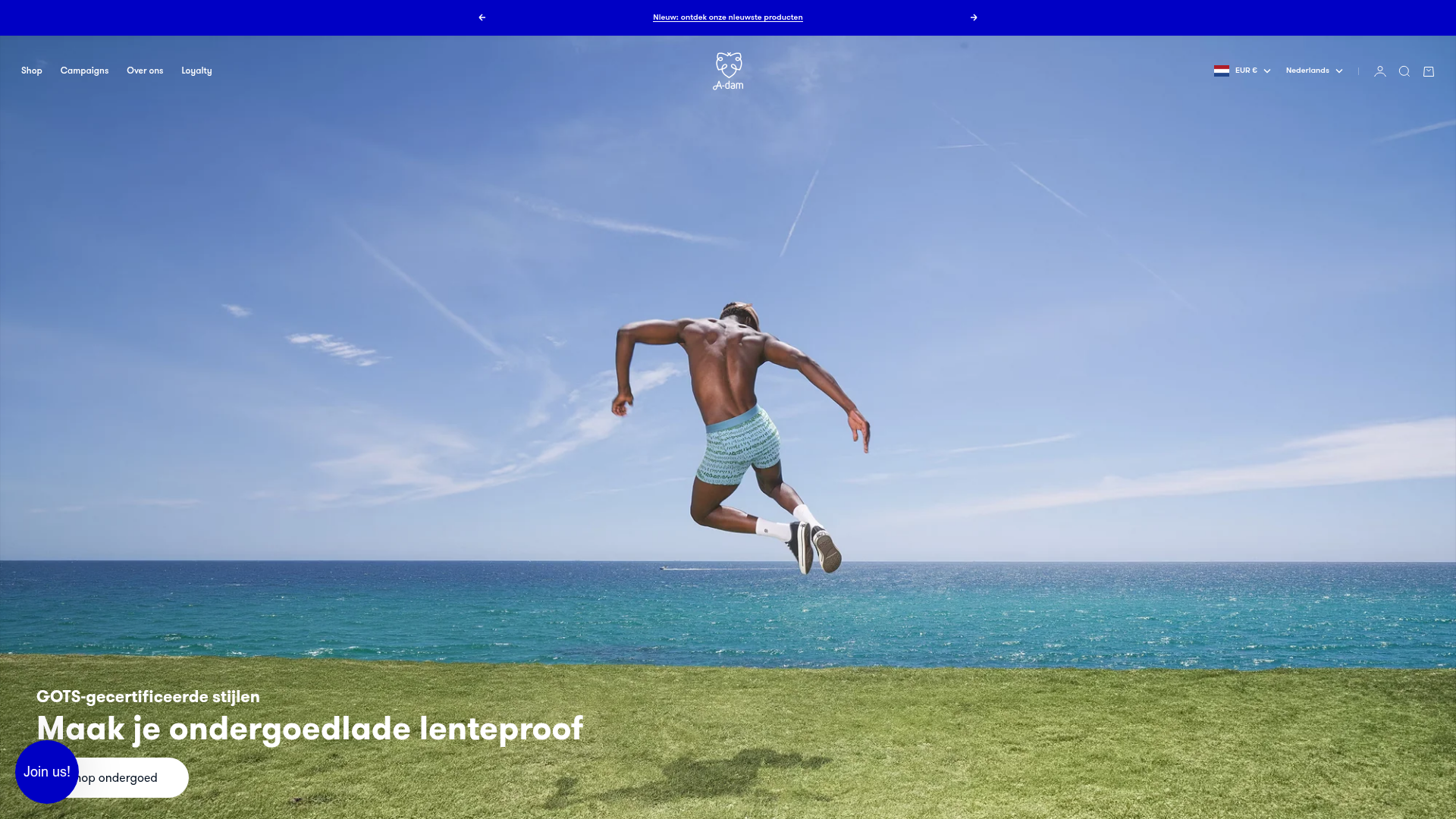 A-dam is a vibrant, Shopify-powered e-commerce storefront for apparel that uses high-impact lifestyle photography and cinematic video to drive brand storytelling. It is an excellent clone reference for modern D2C brands that need to balance playful personality with high-utility features like quick-add size selectors and smooth carousel interactions.