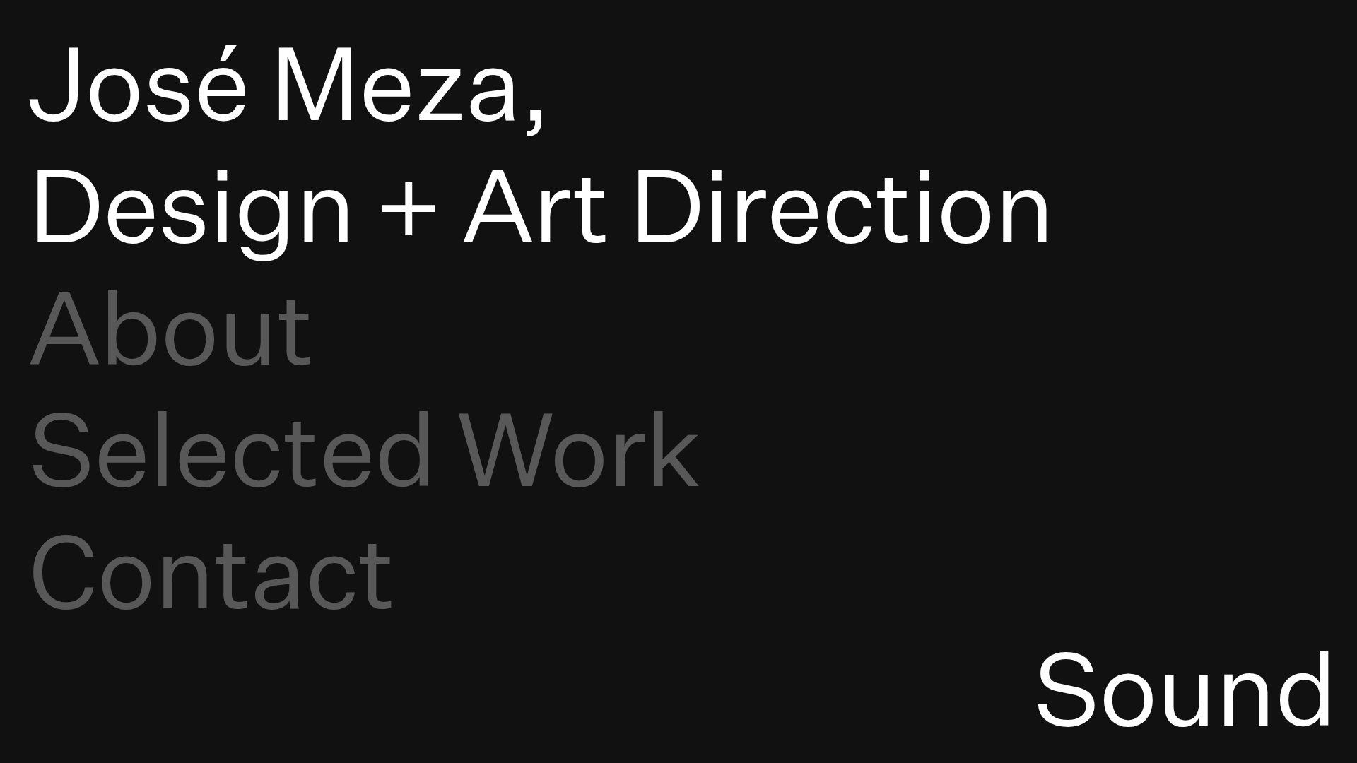 .showing,.soundOn). The sound controller is a fixed-position toggle (#soundController) in the bottom right, allowing users to opt-out of the site's auditory experience.