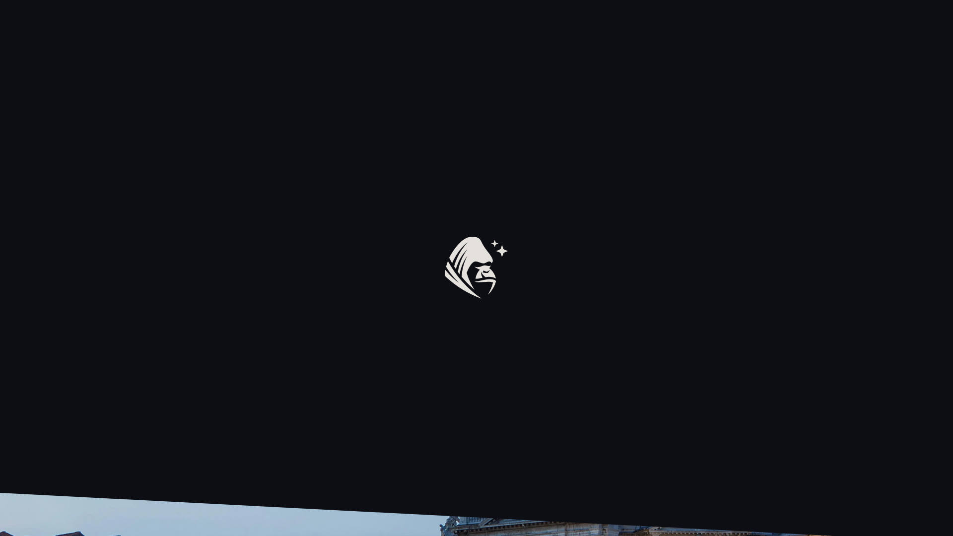- Interactive Logo: A minimalist gorilla wordmark and name paired with star icons.