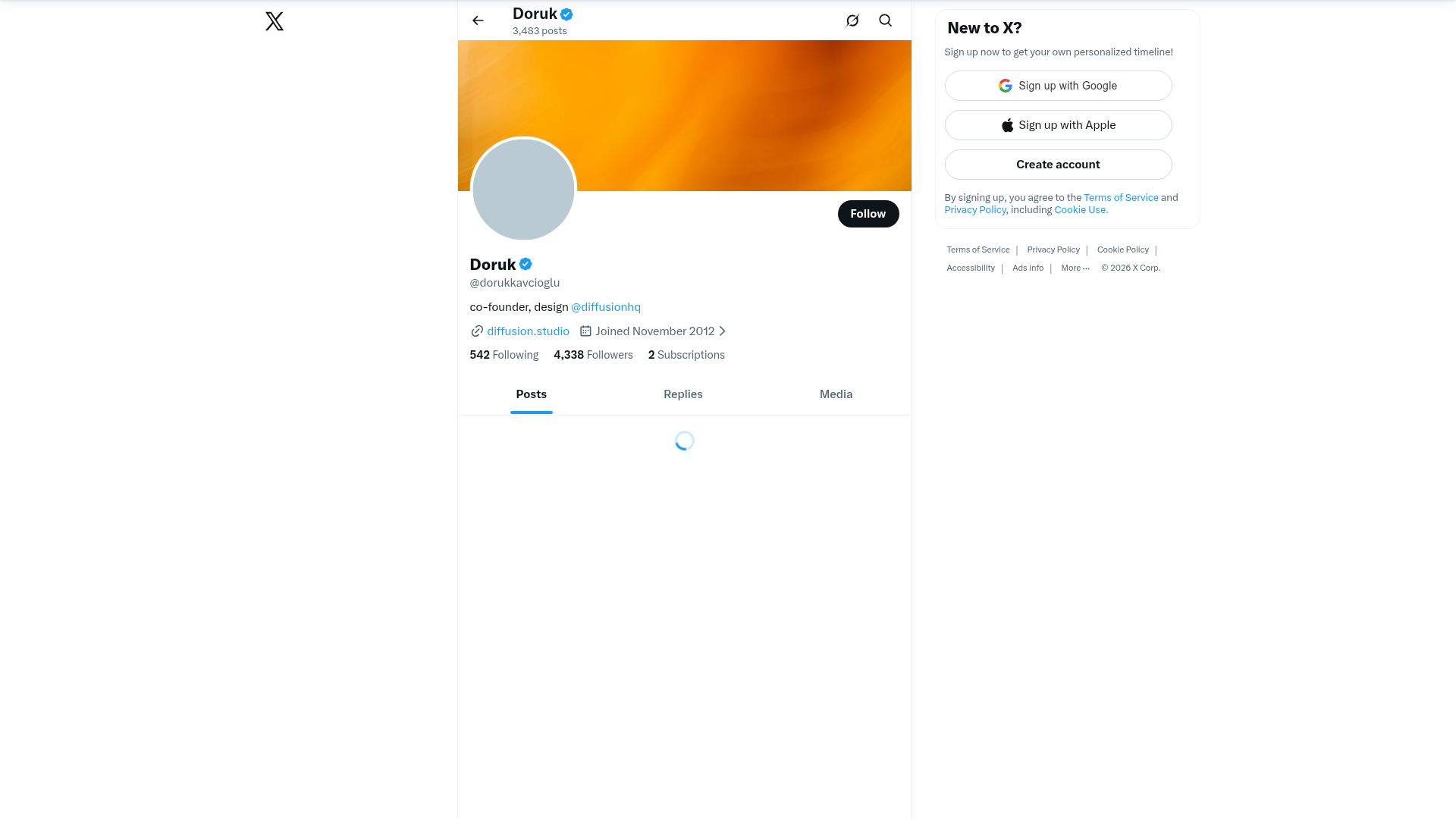 - Tabbed Navigation: Simple, underlined text tabs (Posts, Replies, Media) for content filtering.