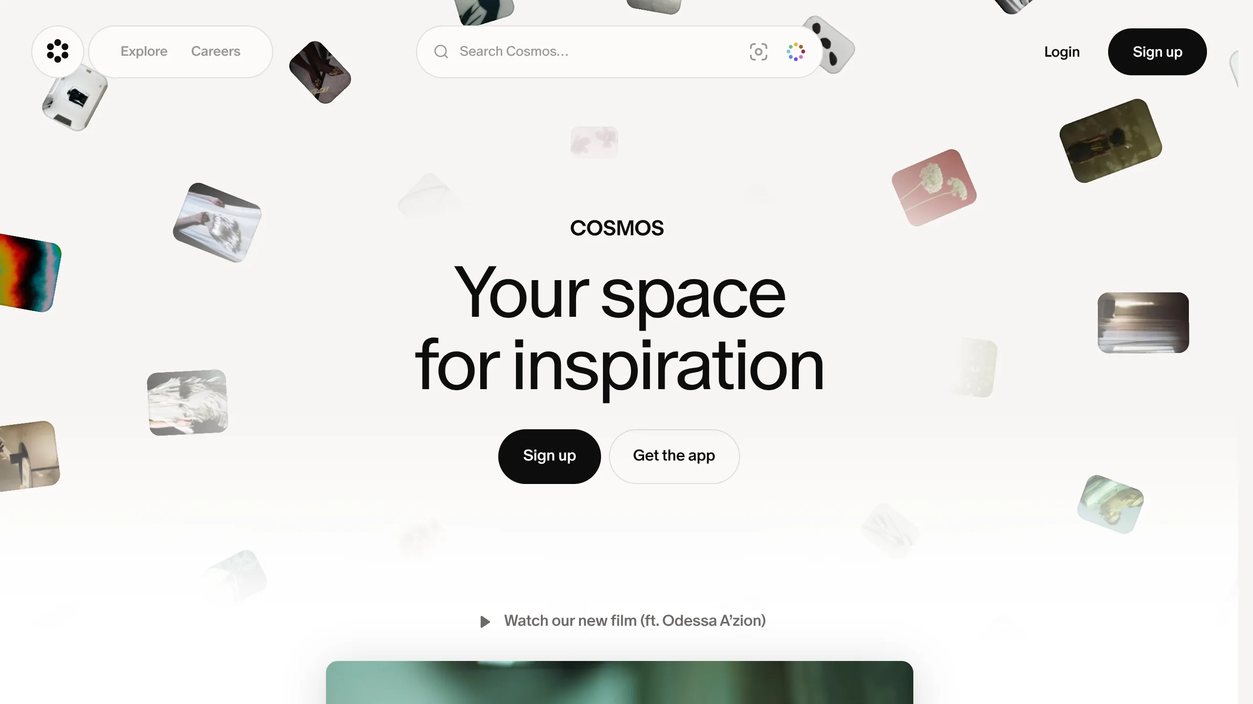 Cosmos is a visual inspiration engine and curatorial tool that uses a highly sophisticated, canvas-based landing page to mirror its core product experience. It is an exceptional clone reference for projects that need to balance a minimalist aesthetic with high-density visual content through elegant spatial animations and scroll-triggered transitions.