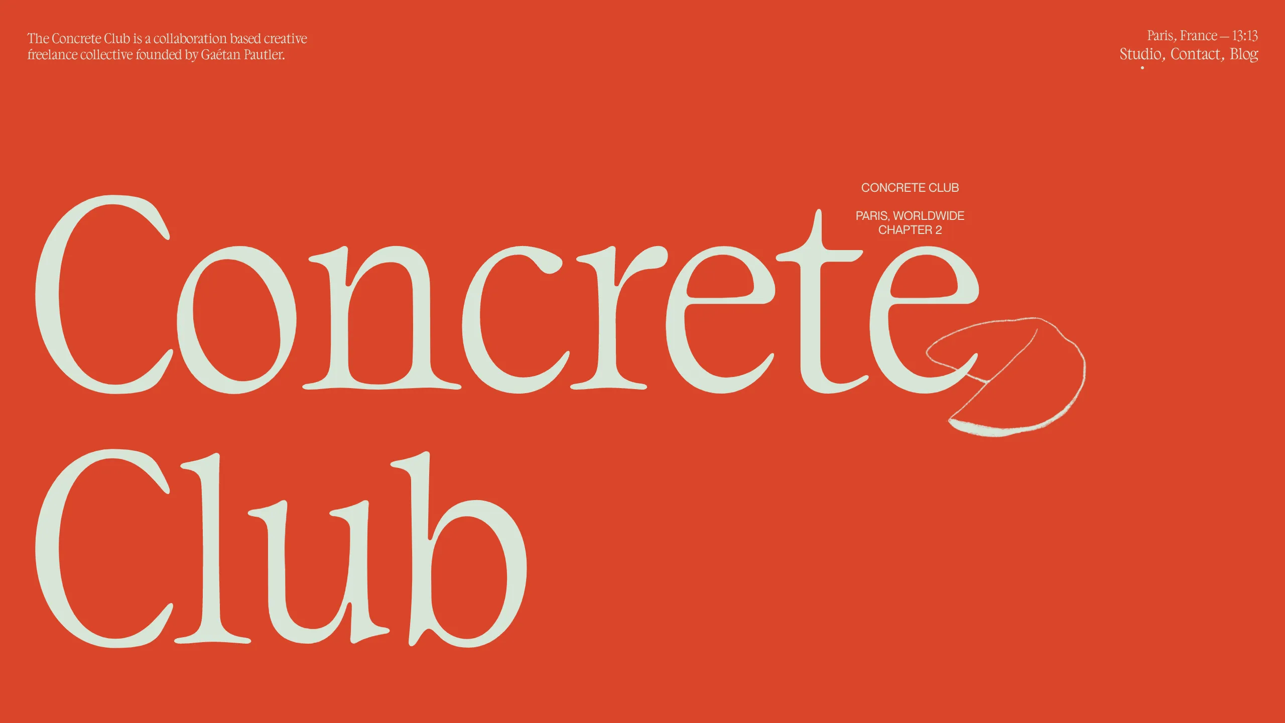 Concrete Club is the personal portfolio of Gaétan Pautler, featuring a striking, experimental aesthetic centered around bold color and large-scale typography. It is an excellent clone reference for creatives who want to master horizontal scrolling layouts, canvas-integrated backgrounds, and refined hover-state interactions.