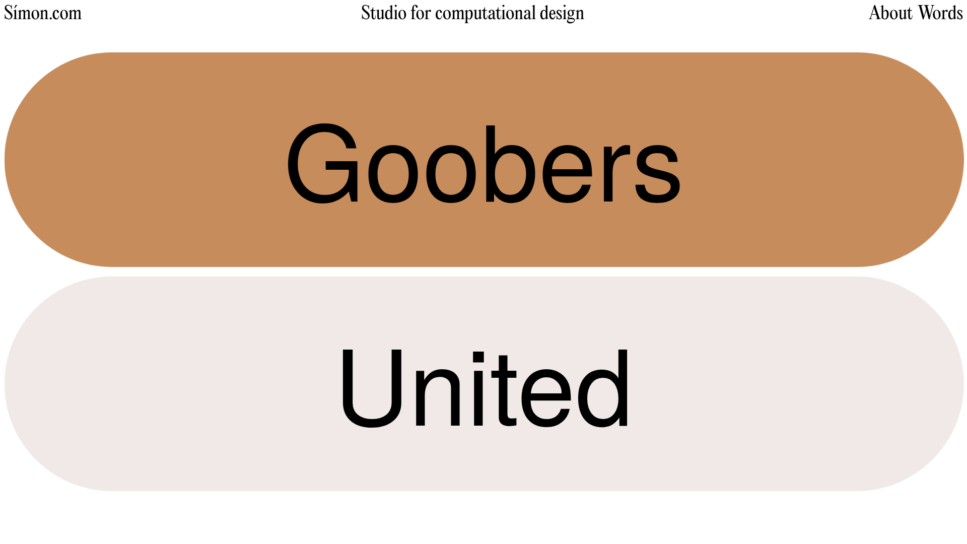 This Svelte-based portfolio for a computational design studio features a highly tactile, experimental interface centered around large, vertically-scrolling interactive "pills." It is an excellent reference for builders looking to implement non-traditional navigation patterns where the UI elements themselves serve as the primary focus and canvas for project transitions.