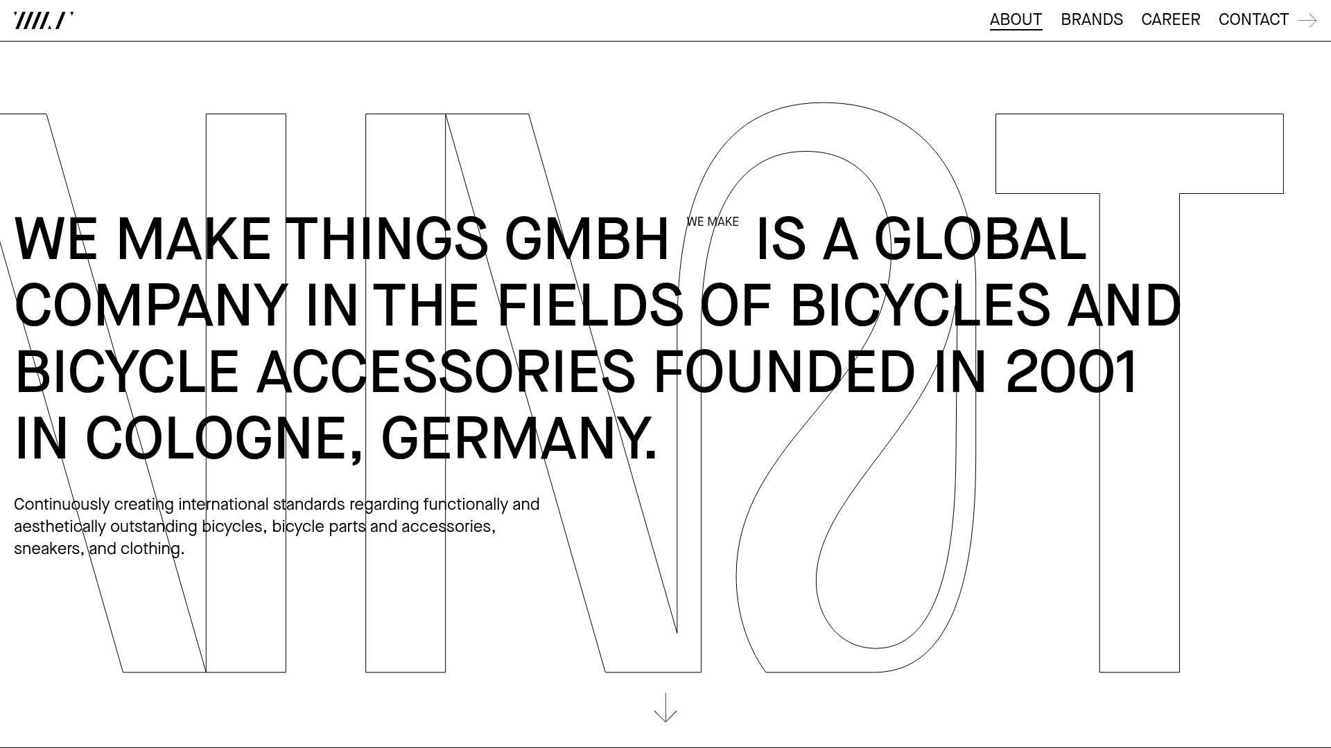 This corporate portfolio for WE MAKE THINGS GmbH is a masterclass in high-impact, minimalist typography. It leverages a clean, Swiss-inspired aesthetic to showcase a multi-brand bike manufacturing collective, making it an excellent reference for builders wanting to balance heavy text volume with an airy, professional feel.