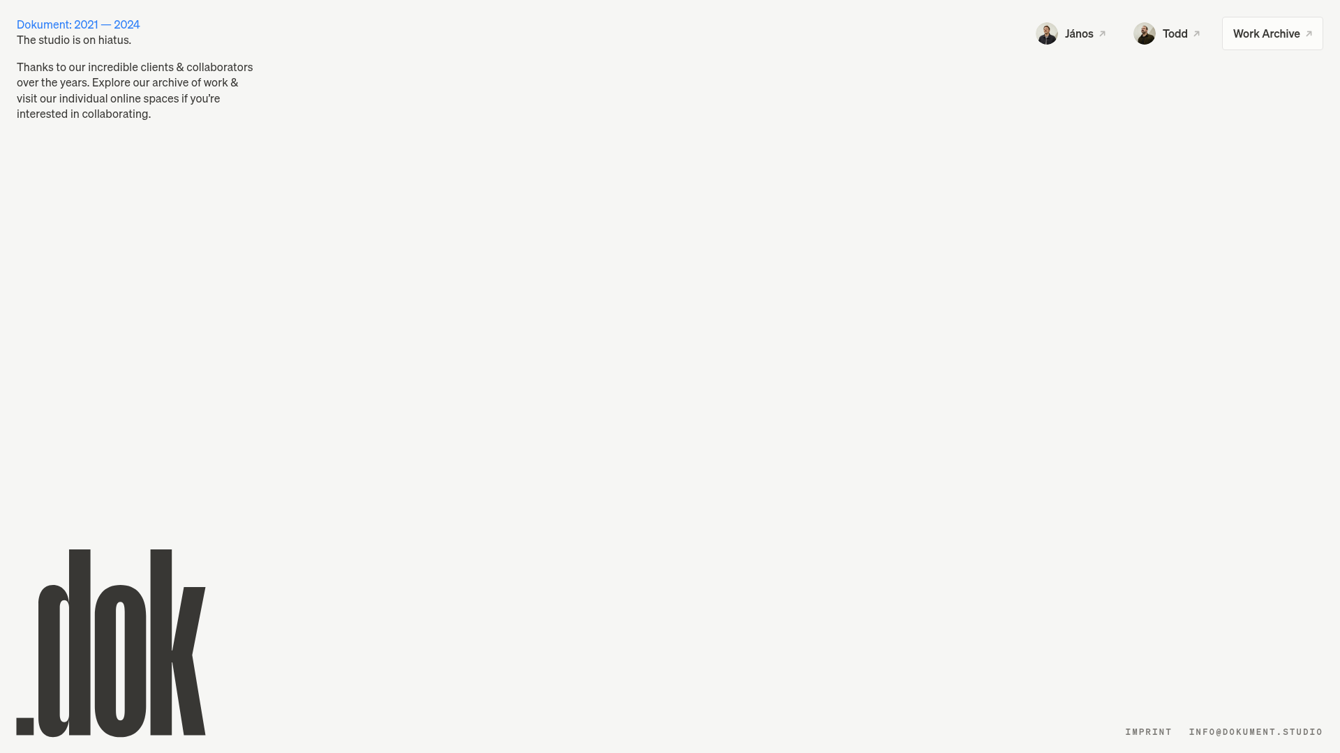 This minimalist landing page for Dokument Studio serves as a high-impact, low-friction entry point or “hiatus” notice for a creative agency. It is an excellent clone reference for builders looking to master brutalist-adjacent typography, asymmetrical layouts, and the effective use of whitespace to create a premium, editorial feel.